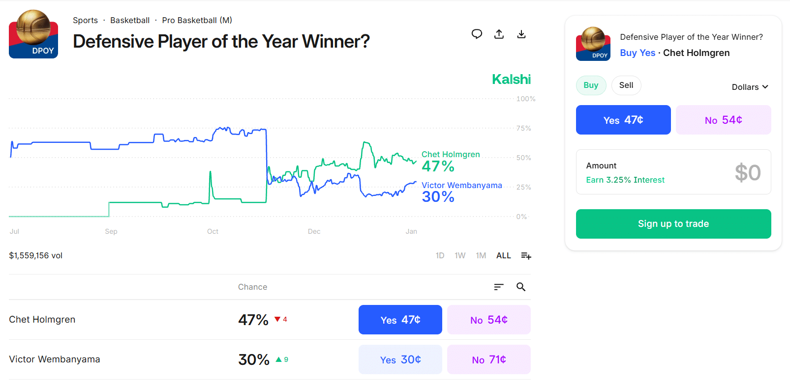 However, if if you’re worried he’s going to lose the award to an outside option like Rudy Gobert or Amen Thompson, his odds are likely to skyrocket as Wembanyama continues to play reduced time. He’s back into the starting lineups, but he’s still playing less than he did at the beginning of the year. Plus, when the Spurs are on the verge of clinching, I can imagine they rest him a few times to make sure he’s ready to go. If you’re not ready to ride Chet to the end, that may be an opportunity to get out at a nice profit.